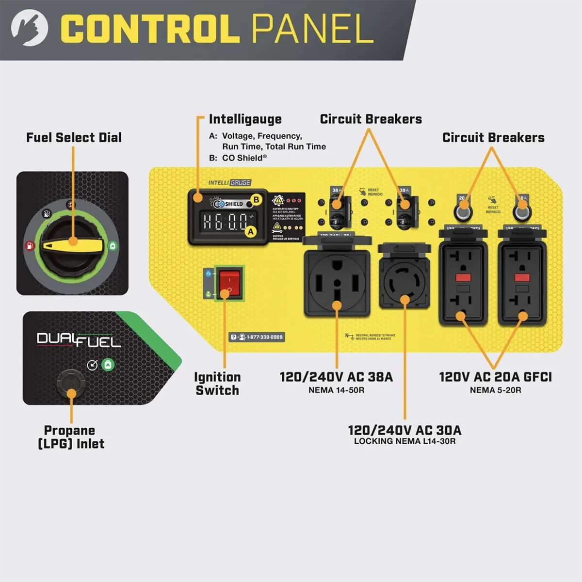 - Dual fuel operation supports gasoline or propane