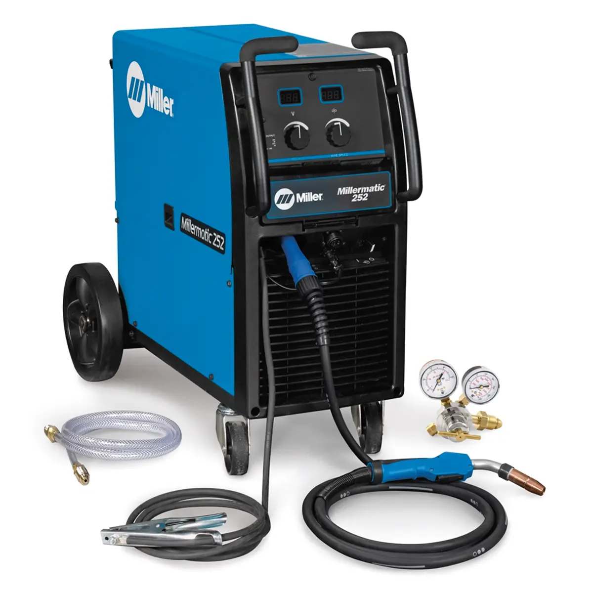 The Miller Electric Millermatic 252 MIG Welder is a heavy-duty 230V MIG welding machine designed for fabrication shops, manufacturing facilities, and farm applications that require consistent, high-amperage performance.